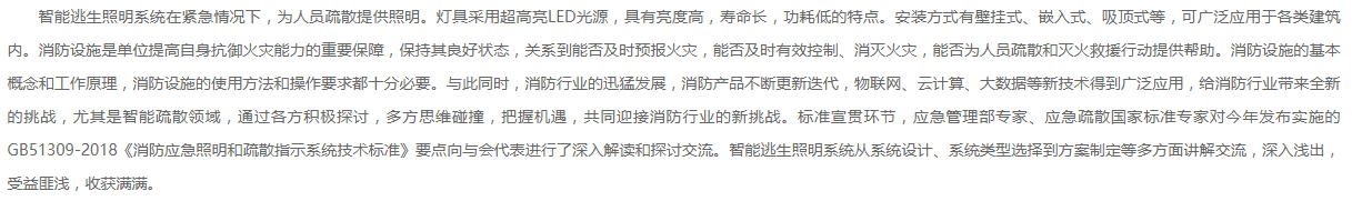 每個終端設(shè)備都有一個獨(dú)立且唯一的地址碼。當(dāng)發(fā)生故障時,主機(jī)能檢測到燈的故障并發(fā)出聲光報警,提醒工作人員在第一時間對底層設(shè)備進(jìn)行維護(hù),消除逃生盲區(qū)。主動遠(yuǎn)離火場,制定各種合理的疏散方案,使疏散和疏散指令與火災(zāi)情況和疏散設(shè)施實(shí)現(xiàn)協(xié)調(diào)聯(lián)動。具有智能動態(tài)光導(dǎo)功能,根據(jù)火災(zāi)報警聯(lián)動信號的詳細(xì)情況,通過計算機(jī)選擇最佳逃生通道,通過改變標(biāo)志燈的箭頭方向,為逃生人員提供有效的疏散逃生通道。系統(tǒng)具有良好的兼容性和可擴(kuò)展性。系統(tǒng)內(nèi)標(biāo)志燈、應(yīng)急燈可設(shè)置電池,電源由智能疏散系統(tǒng)提供。解決了傳統(tǒng)疏散系統(tǒng)燈具中電池長期運(yùn)行所帶來的氧化、腐蝕、設(shè)備損壞和環(huán)境污染等問題。系統(tǒng)中燈具采用透光性好的LED光源,每盞燈消耗1—5W的能量,該系統(tǒng)節(jié)能,符合現(xiàn)代建筑綠色節(jié)能的要求。隨著我國網(wǎng)絡(luò)通信技術(shù)的快速發(fā)展,居民生活水平的提高,智能電子技術(shù)在生活中的廣泛應(yīng)用,智能疏散已成為消防行業(yè)未來發(fā)展的最新方向。