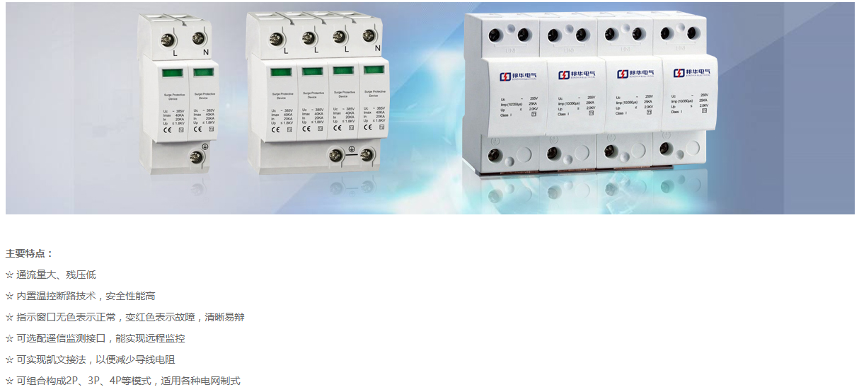 浪涌保護器又稱浪涌保護器、浪涌抑制器、低壓避雷器、避雷器、避雷器等,主要用于低壓配電系統的暫態過電壓保護。暫態過電壓是電路中疊加在系統標稱電壓上的一種強脈沖。它的振幅可以達到額定電壓的幾十倍,持續時間很短。一般包括雷電過電壓和操作過電壓。例如,當雷擊建筑物附近的輸電線路時,會侵入數十千伏的感應暫態過電壓,侵入沿線配電線路,損壞電氣電子設備。為了保護電氣電子設備免受雷電過電壓的破壞,低壓配電系統必須安裝浪涌保護器。